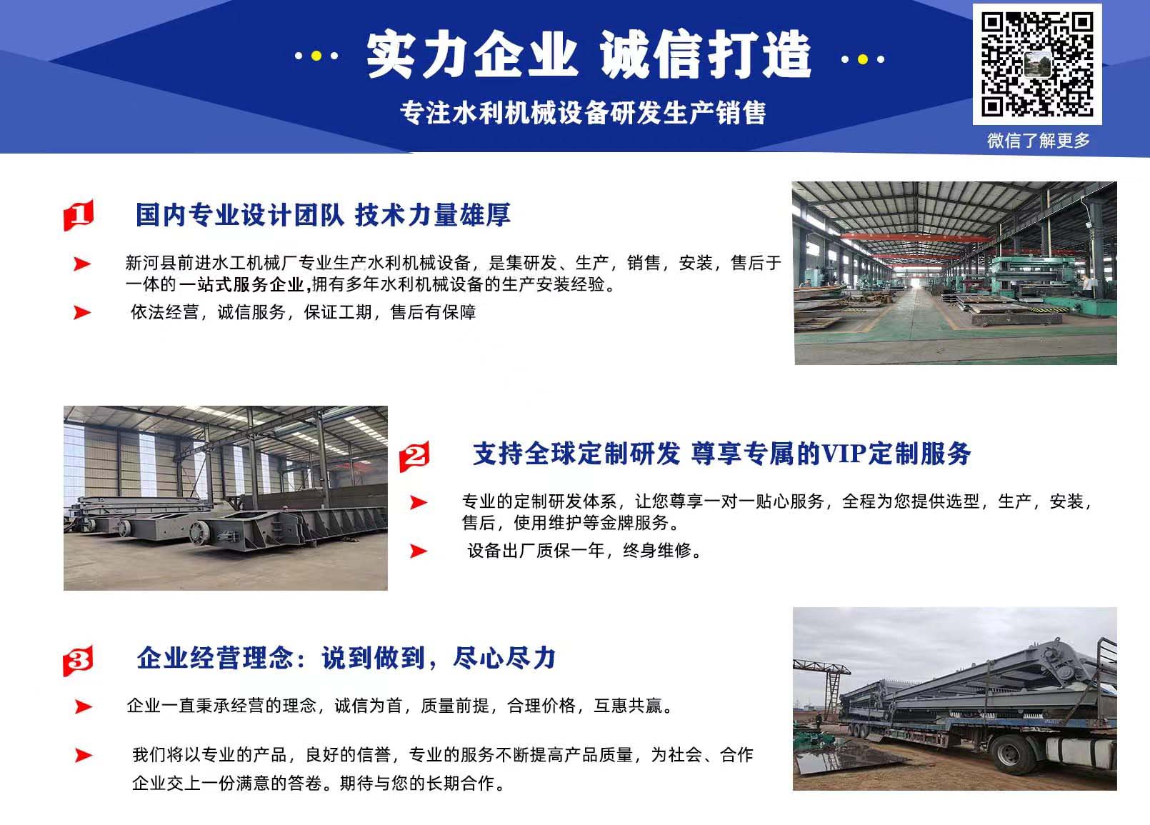 前進水工優(yōu)勢:具有專業(yè)研發(fā)團隊,精湛的制造工藝,嚴謹?shù)臋z驗技術(shù),完善的售后服務(wù)